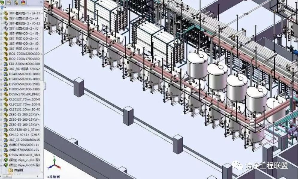 超純水系統(tǒng)水站部分施工難度最大,其主要包括三個部分;設備的搬入及安裝,共用管架的制作安裝以及管道的安裝。設備的移入一定要注意編制詳細的設備吊裝方案,特別是對于超重、超大、易損設備,千萬不可以野蠻置險施工。共用架臺的施工要注意兩個環(huán)節(jié):